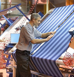 Fabric is sourced from trusted and reliable suppliers. It is stored on racks in the fabric warehouse and inspected before being moved to the cutting department.